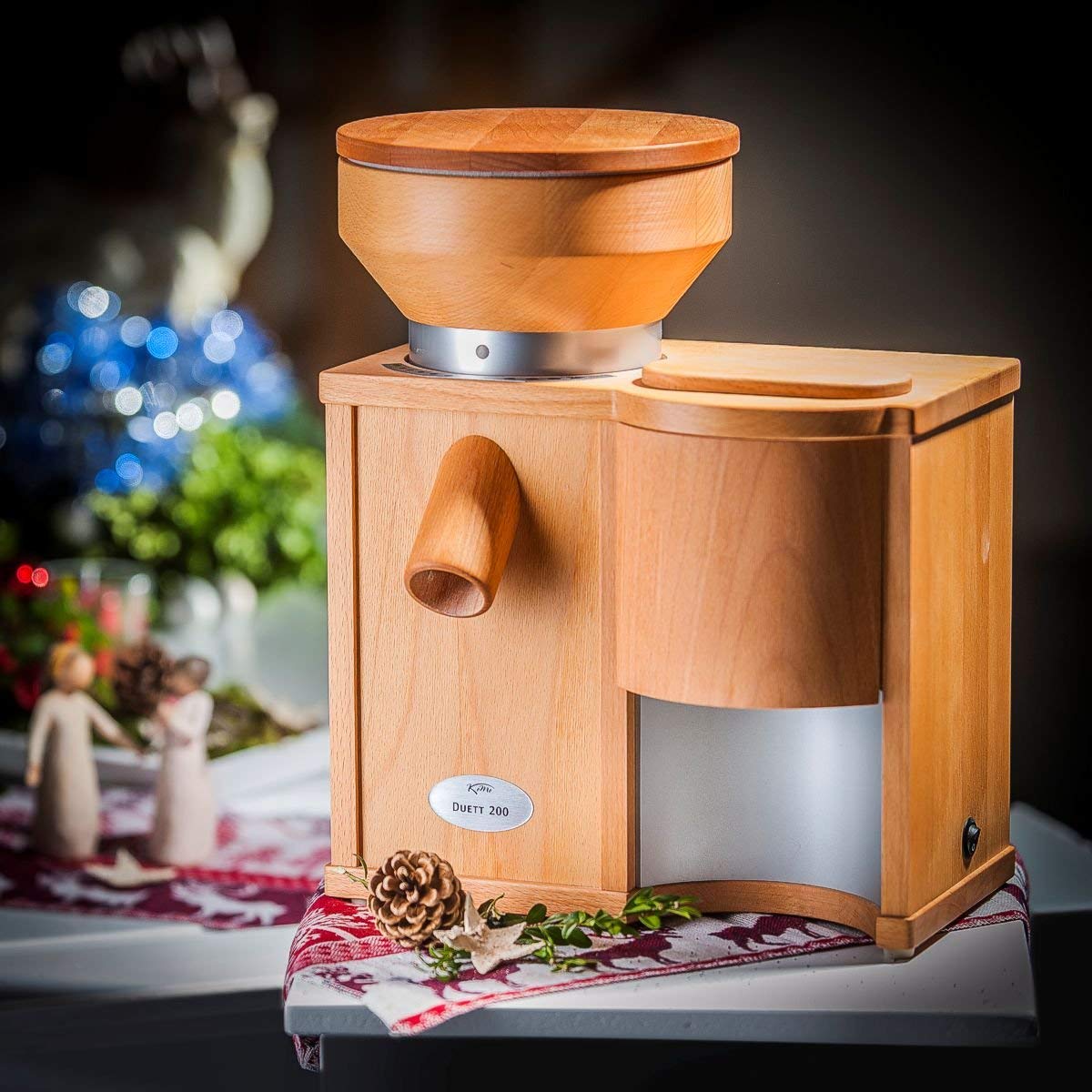 The Austrian-made KoMo Duett lets you start the day with delicious fresh flakes in the morning, make fine flour at midday for an afternoon cake, and crush poppy seeds for both. It’s offered in a choice of models, the Duett 100 and the Duett 200. The two share the same flaker, but on the grinder side the 200 model features an extra large motor for high speed flour output. The cabinets and hoppers of the two models are identical.