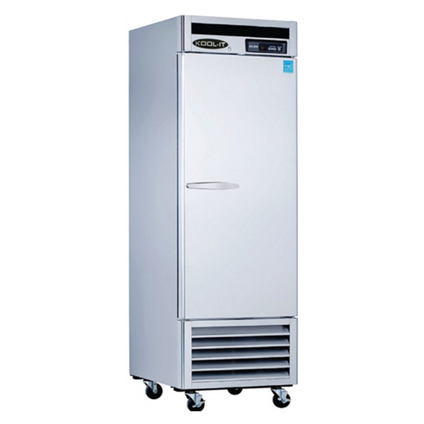 Add cold food storage space to your commercial kitchen or storeroom with the Kool-It 20.5 Cu. Ft. Single Door Reach-In Refrigerator (KBSR-1). The spacious cabinet features a solid, Stainless Steel Interior and exterior that works together with a polyurethane insulated body to maintain temperatures and food safety standards. Multiple shelves stand ready and are height-adjustable to make room for products of any size, while interior lights illuminate the space for easy storage and retrieval. This unit features a bottom-mount compressor, which elevates the storage space and provides easier access to maintenance.