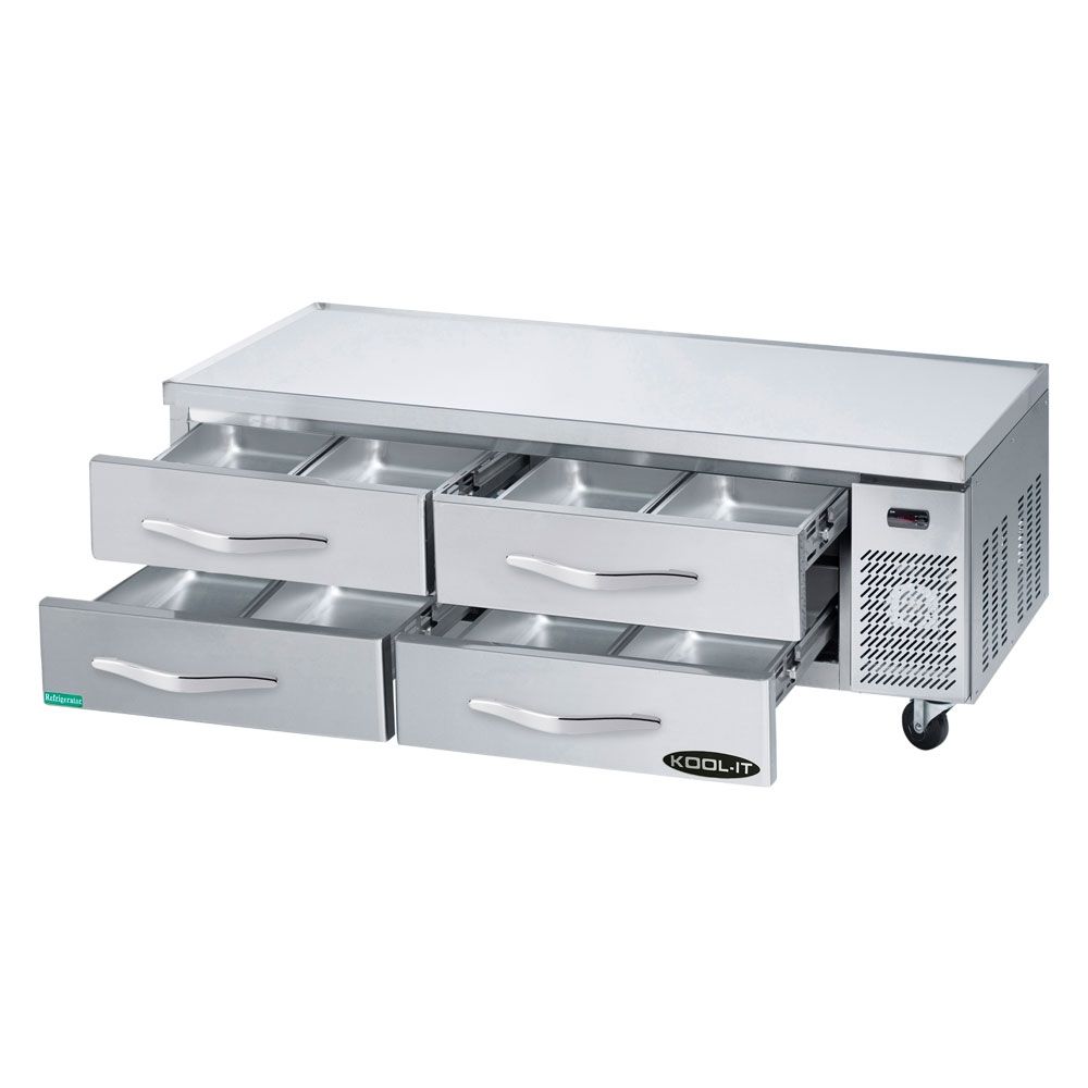 This Refrigerated Chef Base by Kool-It is designed to endure the everyday stress of the commercial kitchen. The chef base features digital temperature display, high-density polyurethane insulation, and 4″ swivel casters. It is created to endure the everyday stress of the commercial kitchen environment, to protect your long term investment and guarantee superior food preservation. It is made from durable stainless steel interior/exterior but the Insulation is foamed-in-place high-density polyurethane insulted body and CFC-free. It has Digital Temperature Display to ensure the temperature is set at a consistent range. Can hold up to 8 (Hotel Pans) with 4 drawers (14.3 cubic ft).