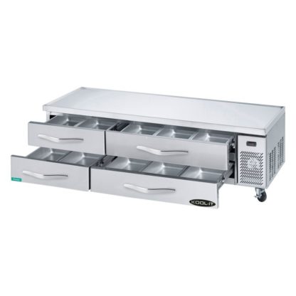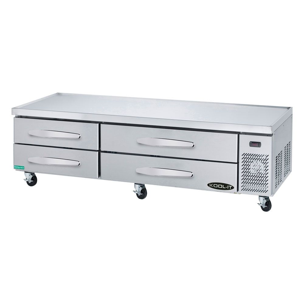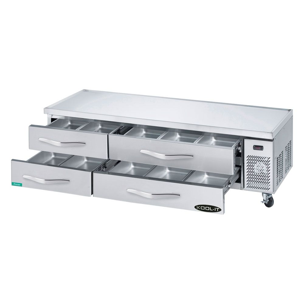 This Refrigerated Chef Base by Kool-It is designed to endure the everyday stress of the commercial kitchen. The chef base features digital temperature display, high-density polyurethane insulation, and 4″ swivel casters. It is created to endure the everyday stress of the commercial kitchen environment, to protect your long term investment and guarantee superior food preservation. It is made from durable stainless steel interior/exterior but the Insulation is foamed-in-place high-density polyurethane insulted body and CFC-free. It has Digital Temperature Display to ensure the temperature is set at a consistent range. Can hold up to 10 (Hotel Pans) with 4 drawers (17.2 cubic ft).