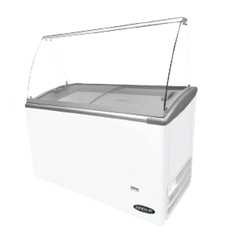 Ice Cream Dipping Cabinet, 41″W, self-contained refrigeration, 10.77 cu. ft. capacity, digital temperature control, -7.6° to -0.4°F temperature range, sliding glass lid, sneeze guard, insulated, rear drain, manual defrost, R-290 refrigerant, white interior & exterior, casters, cULus