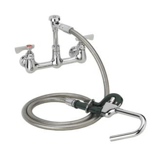 The Krowne 17-202WL pre-rinse assembly is ideal for removing food and juices before sending dishes through the dishmachine. Its base is strengthened by chrome-plated brass, and, since preventers are built into the ceramic cartridges, back-flow risk is reduced. The Krowne 17-202WL pre-rinse assembly comes with a wall bracket for support. It has a 44-inch, stainless steel clad hose that is flexible to reach around large pots.