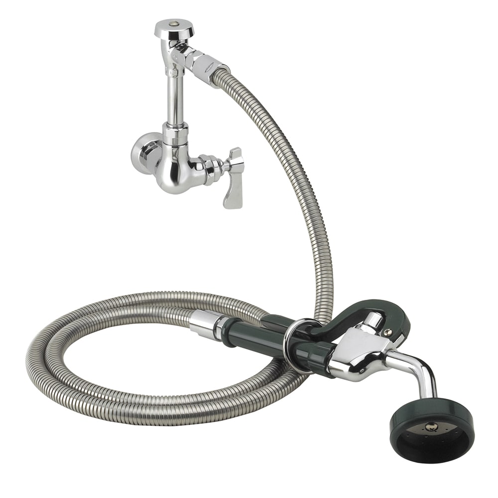 Krowne Royal Series Utility Spray Assembly, wall mount, single valve, 72″ long stainless steel flexible hose, plastic coated wall hook, vacuum breaker, 1/2″ NPT female inlet, mounting kit included, built in check valves, low lead compliant, NSF