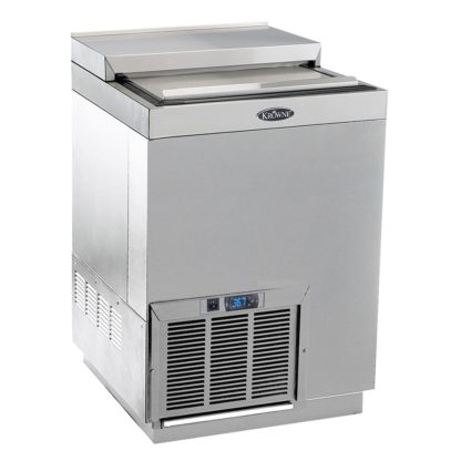 Bottle Cooler, flat top, 24″ W, (5) cases/12oz bottles capacity, (1) sliding lid, (1) adjustable chrome plated divider rack, stainless steel interior, stainless steel exterior front & sides, self-contained refrigeration with condensate evaporator, 1/5hp, 4amps, 115v/60hz/1-ph, NEMA 5-15P, 8′ cord & plug, ETL