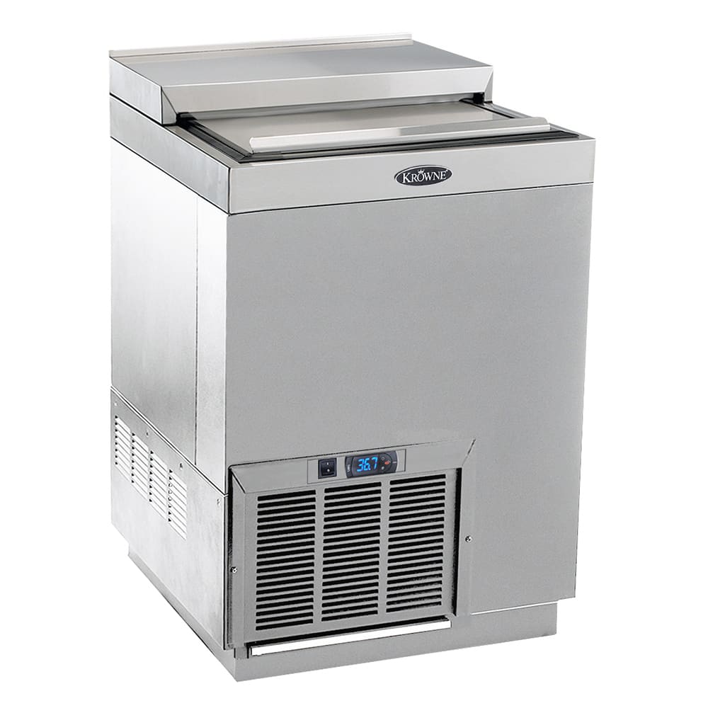 The Krowne BC24-SS bottle cooler is durable enough to withstand commercial use. It is constructed of galvanized steel on the back and stainless steel on the front and sides. Increasing the unit’s strength and creating a barrier against heat, the cabinet walls are filled with 2 inches of dense polyurethane insulation. Inside the unit, all surfaces are made of stainless steel, which can be wiped clean. One chrome-plated rack is included with the unit, and it can be moved as needed to separate different types of beverages.