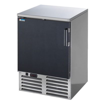 Glass Froster, front-loading door style, 24″W x 24″D x 35″H, self-contained refrigeration, -5 to 5F temperature range, digital thermostat, stainless steel interior, stainless steel exterior sides, black vinyl door, unfinished top, automatic defrost timer, automatic condensate evaporator, R404A, 1/3 HP, 8′ cord with NEMA 5-15P, 5.2amps, 115v/60/1-ph, ETL