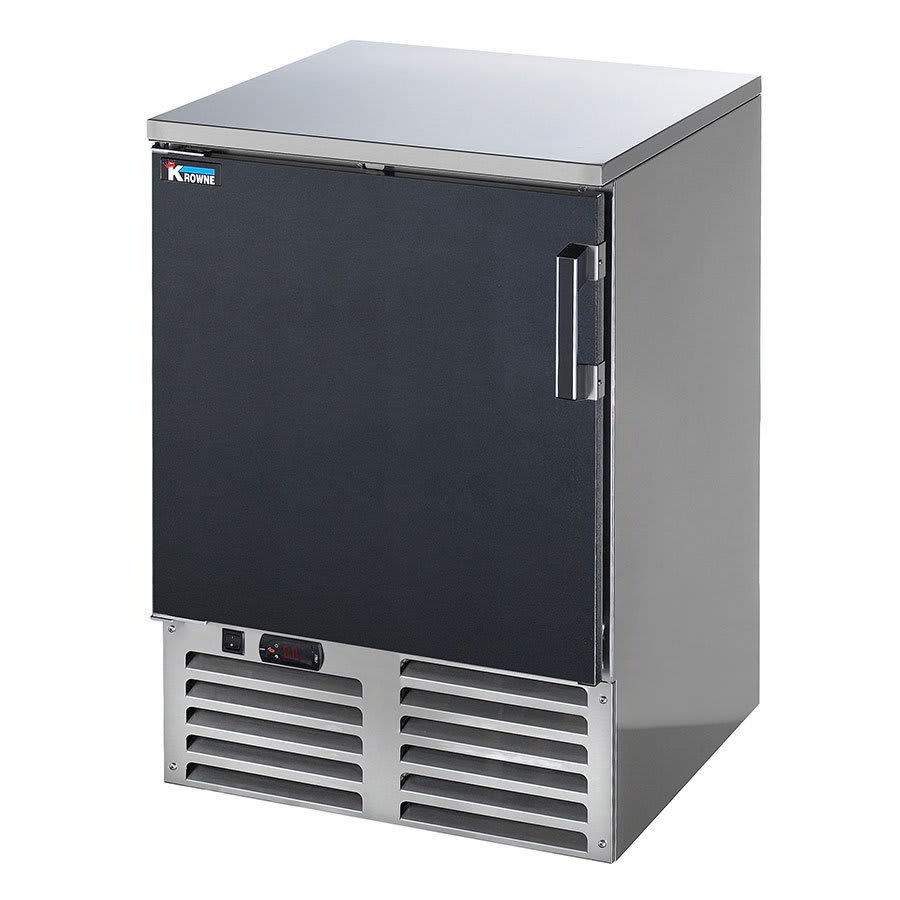 The Krowne FMC24 1-section glass chiller keeps your mugs cold and frosty for serving a variety of beverages. It can accommodate up to (90) 10-ounce mugs at a time, perfect for bars, restaurants, and more. There is a floor rack and two levels of shelving in the stainless steel interior. The corners are coved to ensure cleaning is easy. Temperatures stay between -5 and 5 degrees Fahrenheit and are maintained with the help of foamed in place insulation. The Krowne FMC24 1-section glass chiller has a digital thermostat and automatic defrost system.