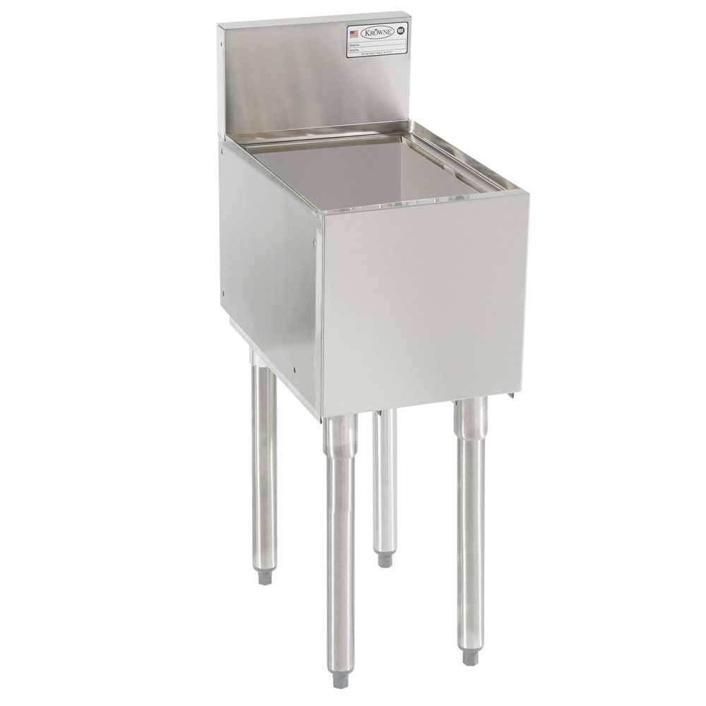 Royal Series Underbar Bottle Storage/Ice Bin, insulated, 6″W x 19″D, holds (3) bottles, 20 lbs. ice capacity, 10″ deep stainless steel bin liner, 1″ drain, stainless steel top, front, & sides, stainless steel legs with adjustable thermoplastic bullet feet, NSF (Unit MUST Ship Attached to another Krowne piece)