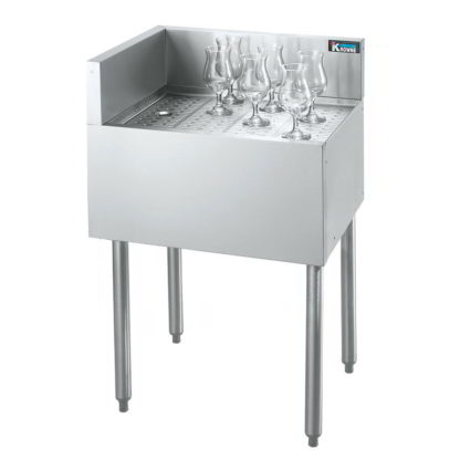 Royal Series Underbar Corner Drainboard, free standing, 36″W x 19″D x 36-1/2″H.O.A., left end return, embossed top with 1″ drain, stainless steel top, front, & sides, stainless steel legs with adjustable thermoplastic bullet feet, NSF