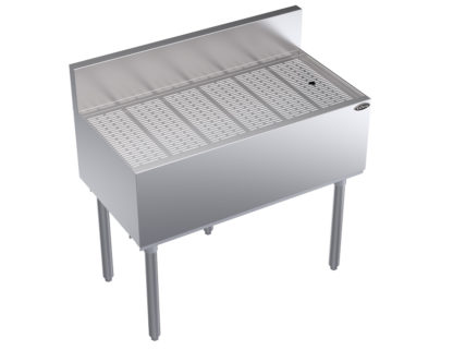 Royal Series Underbar Drainboard, free standing, 36″W x 19″D, embossed top with 1″ drain, stainless steel top, front, & sides, stainless steel legs with adjustable thermoplastic bullet feet, NSF