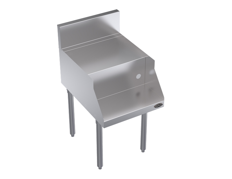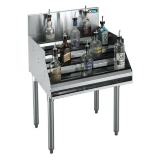 Royal Series Underbar Blender Station, with flat top, 12″W x 24″D (to match speedrail depth), 9″D recessed blender shelf with utility box mounted underneath (GFCI receptacle required), stainless steel top, front, & sides, stainless steel legs with adjustable thermoplastic bullet feet, NSF