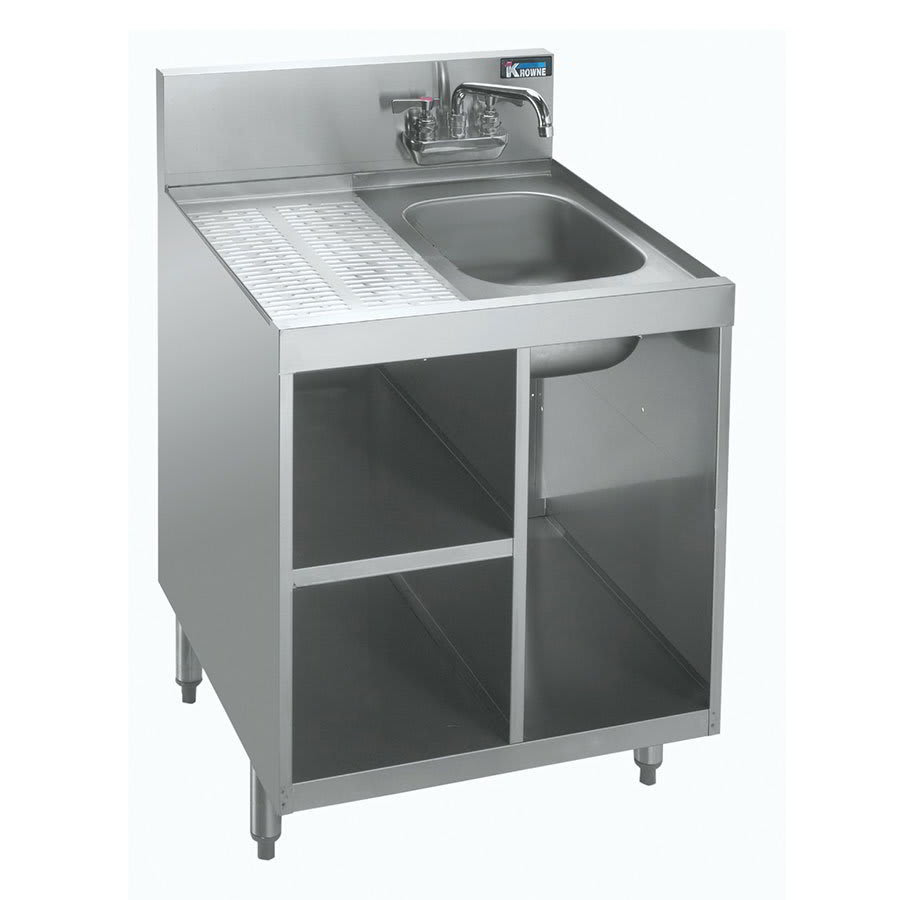 Krowne KR24-24SC Under Bar Glass Storage Unit – Drainboard Top w/ Sink, 6 1/2″ Back Splash, 24″ x 24″