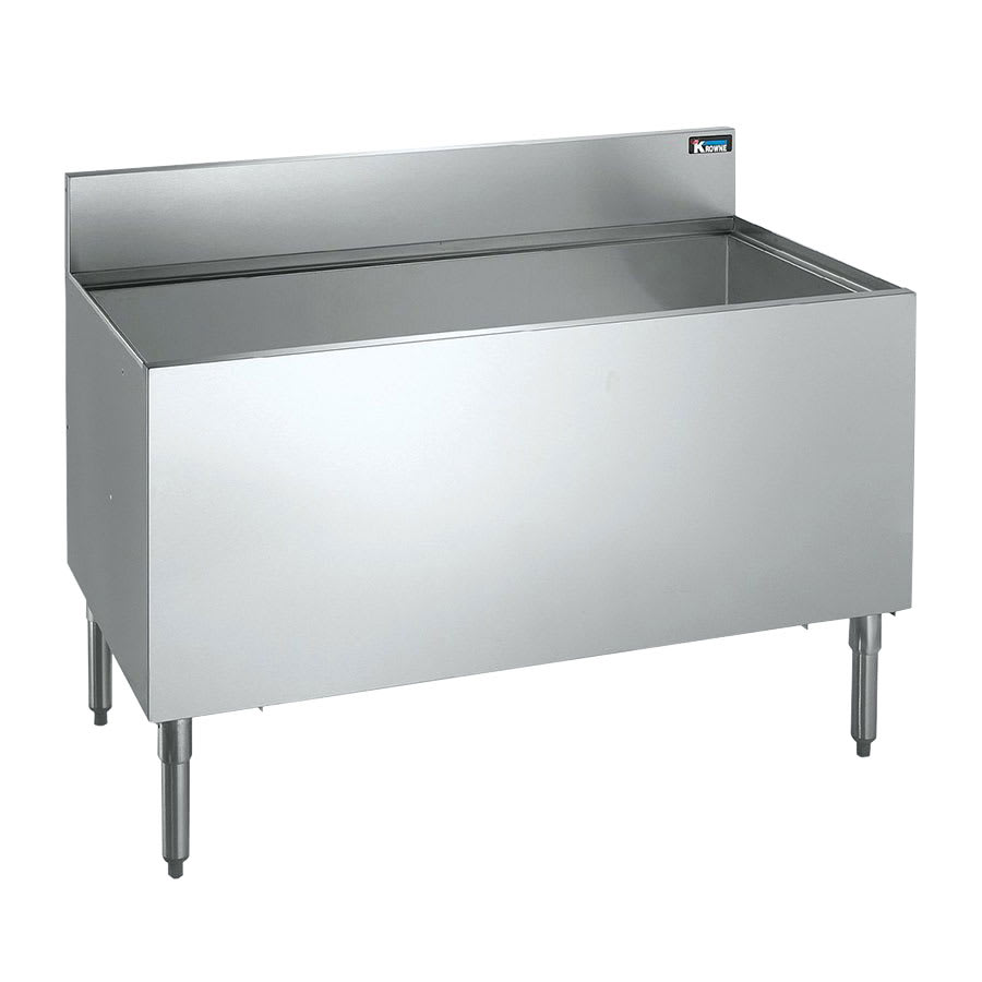Royal Series Underbar Chill Master Beer Bin, underbar, 48″W x 24″D, holds (12) cases of beer bottles, 18″ deep liner, perforated bottom, 1″ drain, stainless steel top, front, & sides, stainless steel legs with adjustable thermoplastic bullet feet, NSF