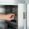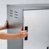 This Lakeside 5720 meal delivery cart accommodates 20 trays supported by ledge panels that can be removed to streamline cleaning. Its double swing doors can open to 270 degrees so users can fully access the cabinet interior during loading and maintenance. The recessed handle doesn’t snag clothes or loosen from frequent pulling. Beneath the cabinet, 6-inch rolling casters provide controlled movement for transporting full trays of food without struggle.