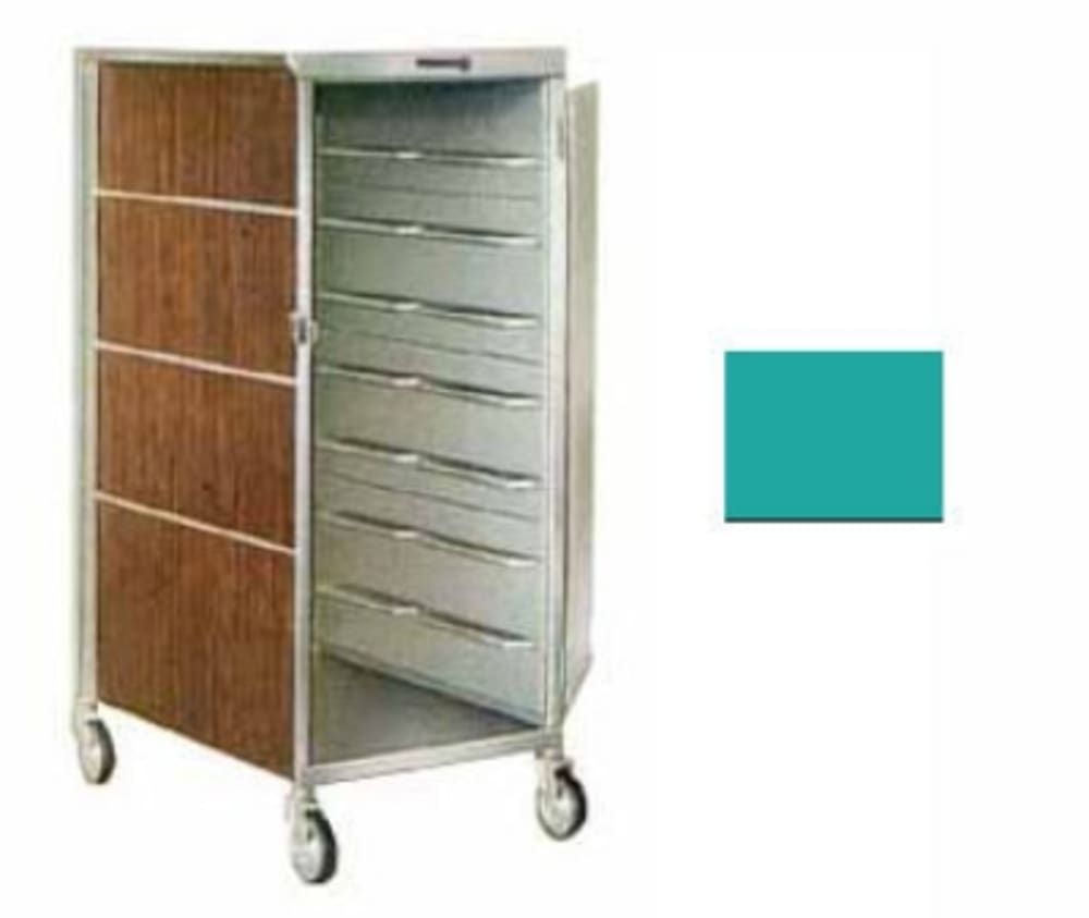 Compact Tray Truck, enclosed, single compartment, non-insulated, (1) front door, (16) 15″ x 20″ tray capacity, 6″ ledge spacing, stainless steel construction with vinyl laminate panels, teal, NSF