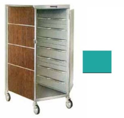 Compact Tray Truck, enclosed, single compartment, non-insulated, (1) front door, (20) 15″ x 20″ trays capacity, 6″ ledge spacing, stainless steel construction with vinyl laminate panels, teal, NSF