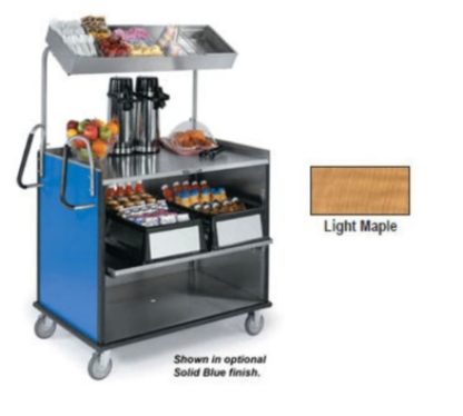 Compact Mart Cart, 28-1/4″D x 49″W x 72-1/4″H, (1) 70 lb capacity adjustable & removable slide out shelf, stainless steel (2) post height adjustable overshelf, stainless steel with laminate finish, 5″ non-marking cushion tread casters ( (2) with brakes & (2) fixed), Light Maple