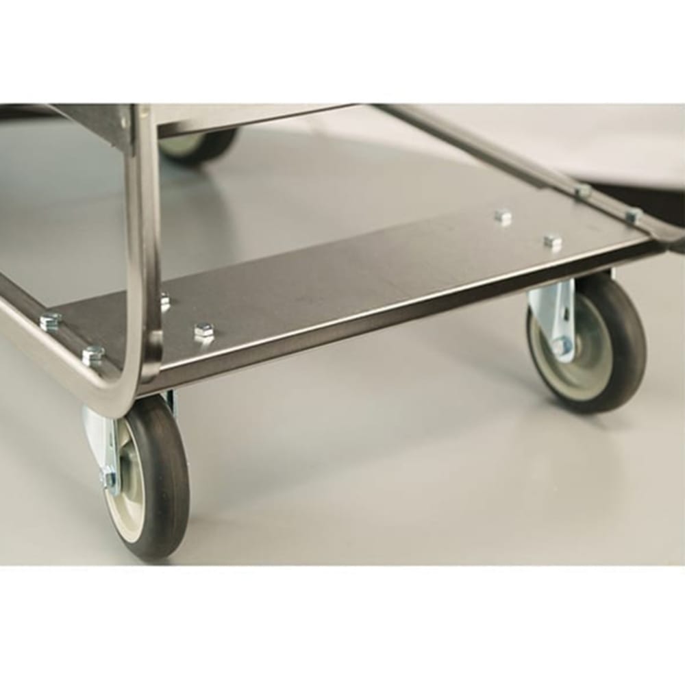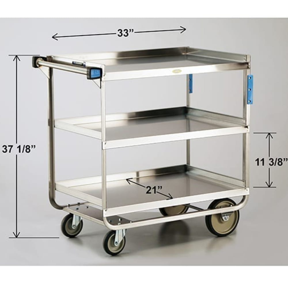 Utility Cart, open, (3) shelf, shelf size 33″ x 21″, U-shaped frame, all-welded stainless steel construction, 700 lb. capacity, (2) 5″ swivel & (2) 8″ fixed casters