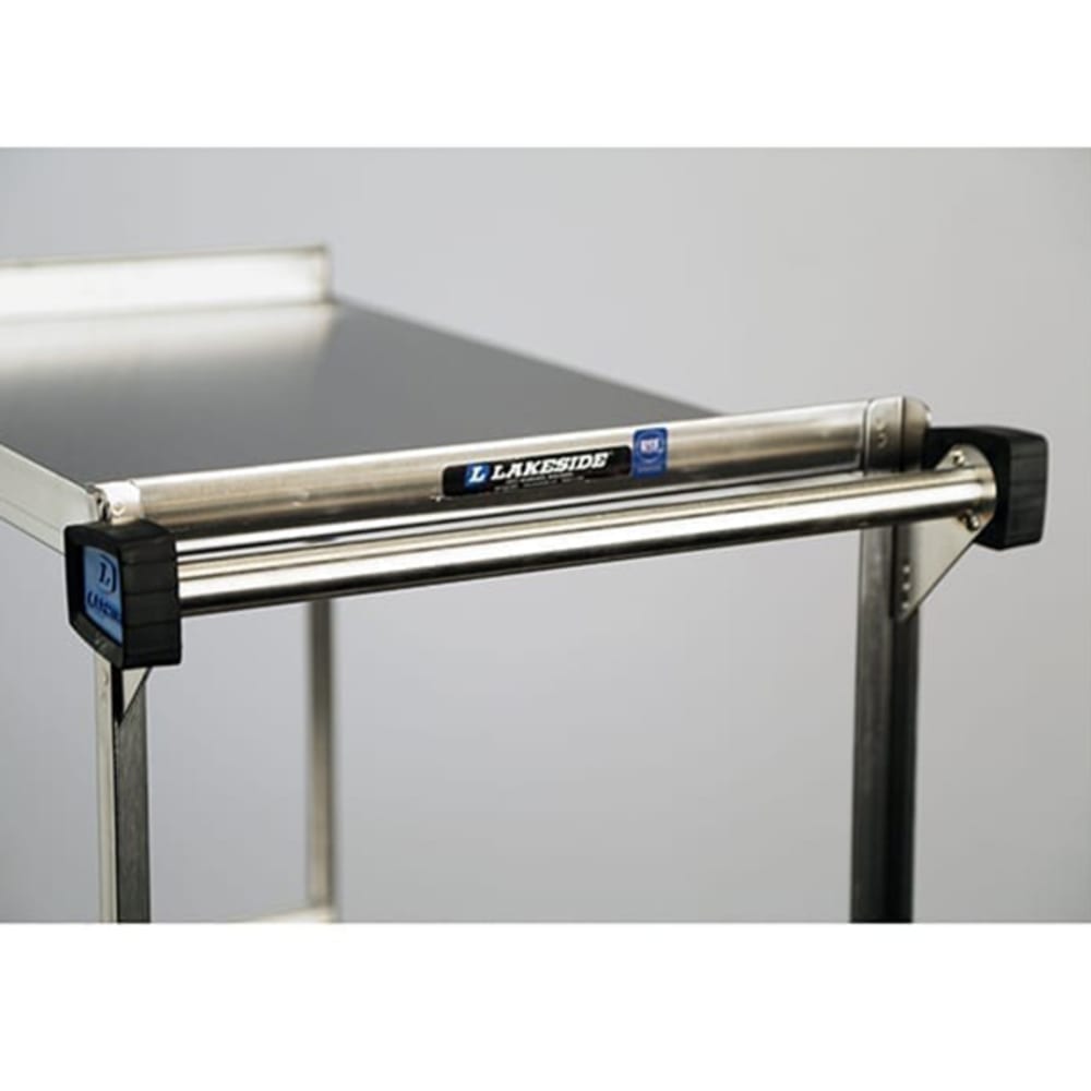 The Lakeside 744 utility cart has a 700-pound capacity across three 33-inch-by-21-inch shelves. It is constructed of stainless steel to resist minor damage and corrosion. To ensure durability, the shelves are double hemmed, and the U-frame design offers structure for use in commercial settings. A push handle makes steering the cart comfortable. There are two swivel casters for maneuvering around obstacles, while the fixed casters help guide the Lakeside 744 three-level utility cart in a straight line.