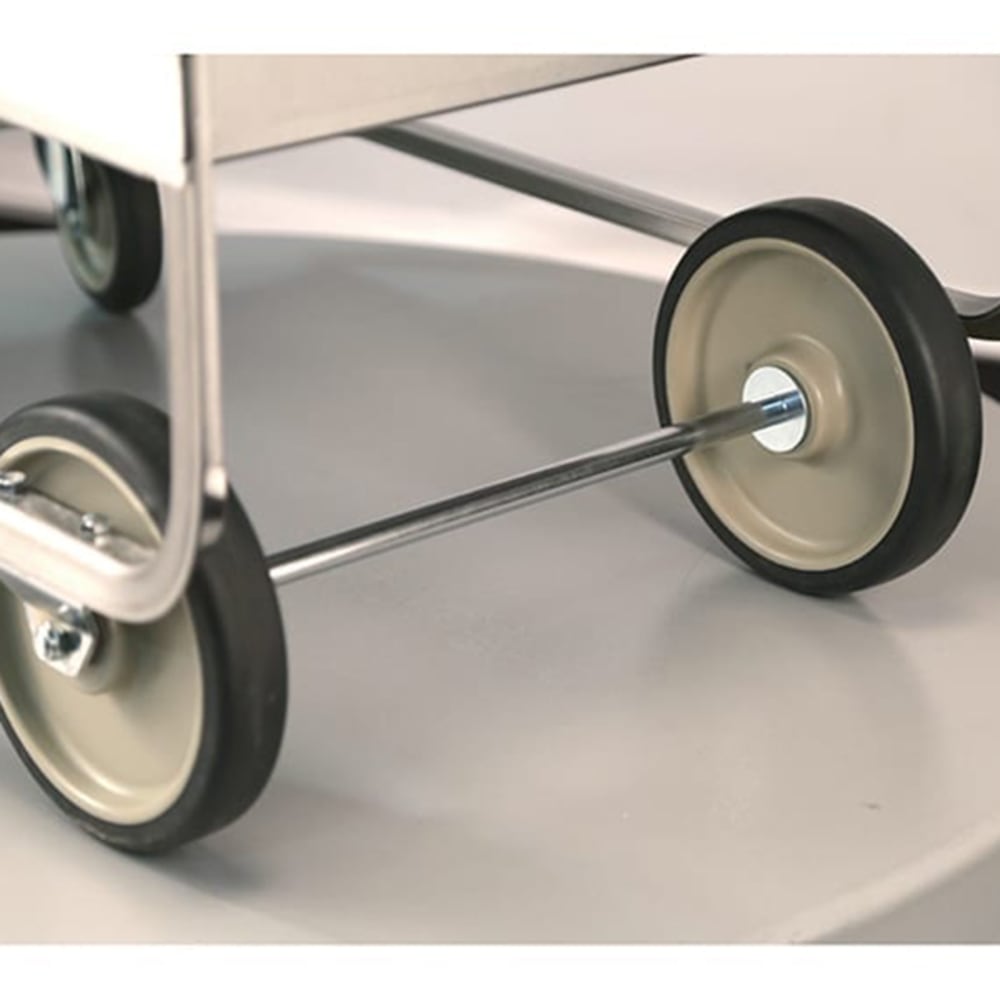 - (2) 8-in. fixed casters guide the cart in a straight line