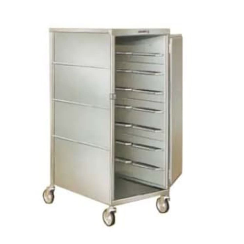Tray Delivery Cart, enclosed-type, single door, single compartment, (16) 15″ x 20″ tray capacity, (2) trays per ledge, 6″ spacing, 270° door swing, 5″ swivel casters, 200/300 stainless steel construction, NSF, Made in USA