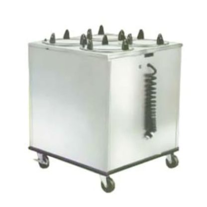 Adjust-a-Fit Dish Dispenser, heated, cabinet style, enclosed base, mobile, (3) self-leveling dish dispensing tubes, maximum dish size 12″ diameter, stainless steel construction, 4″ swivel casters (2) with brakes, 6’coiled cord with NEMA 5-15P, NSF, UL, Made in USA