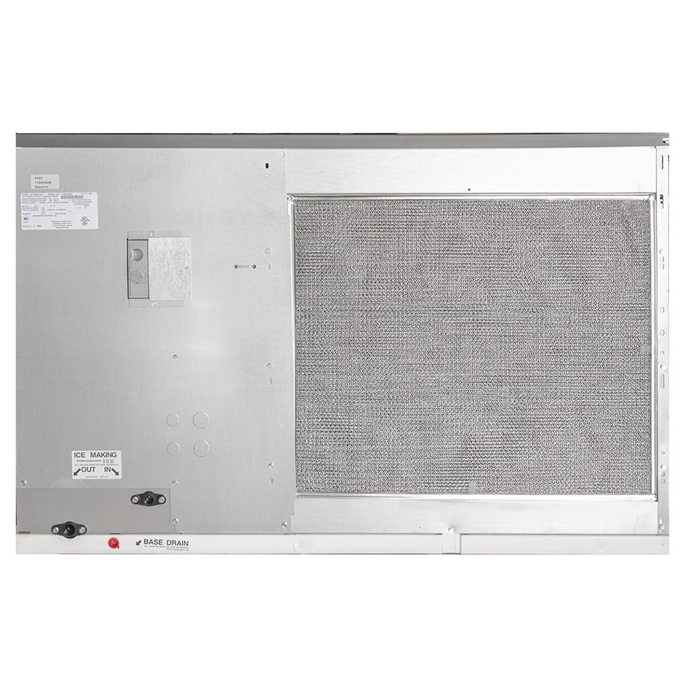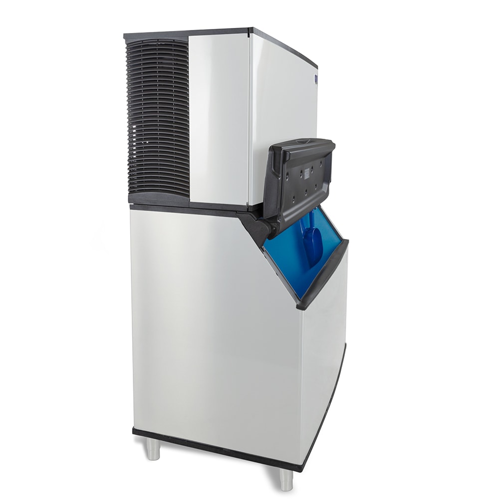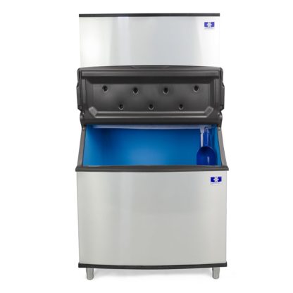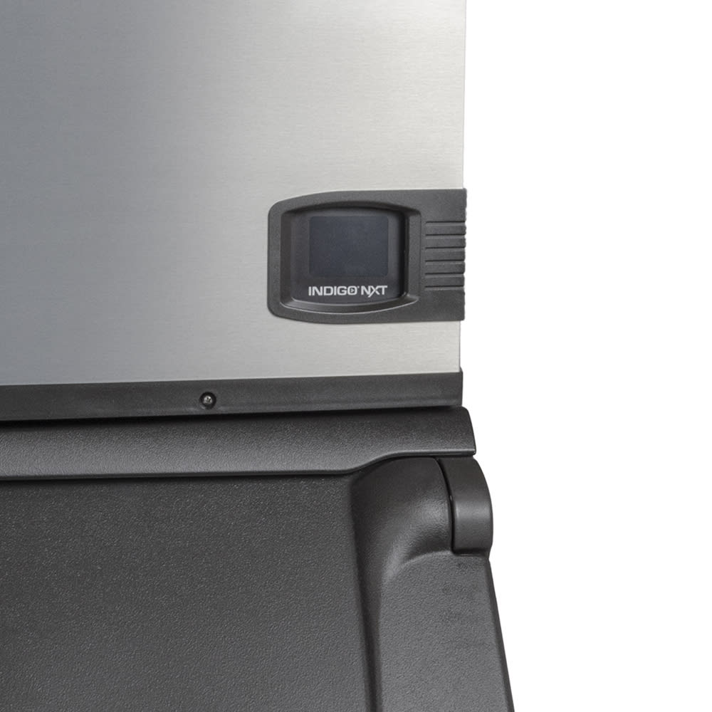 IDT-1900A Ice Maker: Indigo NXT Series Ice Maker, cube-style, air-cooled, self-contained condenser, 48″W x 24″D x 29-1/2″H, production capacity up to 1965 lb/24 hours at 70°/50° (1470 lb AHRI certified at 90°/70°), DuraTech exterior, regular dice size cubes, R410 refrigerant, NSF, cULus, CE, 208-230v/60/1ph; D-970 Ice Bin: Ice Bin, 48″W x 34″D, 50″H, with side-hinged front-opening door, side grips, AHRI certified 882 lb ice storage capacity (29.7 cu. ft.), for top-mounted ice maker, Duratech exterior, NSF