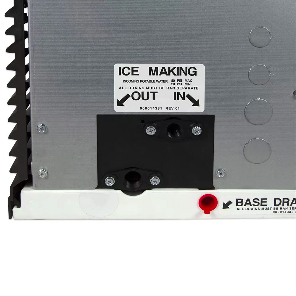 The Manitowoc Ice IYT0900W Indigo NXT ice maker head has easyTouch technology to handle operations, whether running diagnostics on an issue, programming after-hours inactivity, or just setting up how much ice to make in a day. Because the head is water cooled, water is piped into the condenser and cools the refrigerant rather than air. This setup involves more work and water than an air-cooled unit, but it saves in efficiency in the long run. When conditions are ideal, the head produces 722 pounds of ice in a 24-hour period.