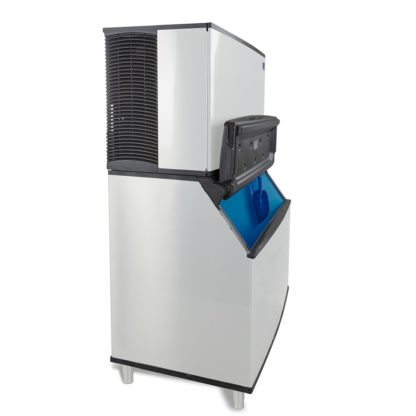 IYT-1500A Ice Maker: Indigo NXT Series Ice Maker, cube-style, air-cooled, self-contained condenser, 48″W x 24″D x 29-1/2″H, production capacity up to 1660 lb/24 hours at 70°/50° (1412 lb AHRI certified at 90°/70°), DuraTech exterior, half dice size cubes, R410 refrigerant, NSF, cULus, CE, 208-230v/60/1ph; D-970 Ice Bin: Ice Bin, 48″W x 34″D, 50″H, with side-hinged front-opening door, side grips, AHRI certified 882 lb ice storage capacity (29.7 cu. ft.), for top-mounted ice maker, Duratech exterior, NSF