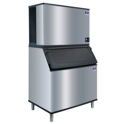 The Manitowoc IYT1500N/JCT1500/D970 remote-condenser ice maker with bin can produce 1,770 pounds of ice in a day. Production can be set to match the amount of ice in the bin or the time of day. Using the head is facilitated by its icon-based easyTouch control panel, which runs 24-hour diagnostics to find maintenance issues and alert the operator. Some of the internal components are removable for cleaning, and some have antimicrobial protection built in to slow bacteria growth between each cleaning.