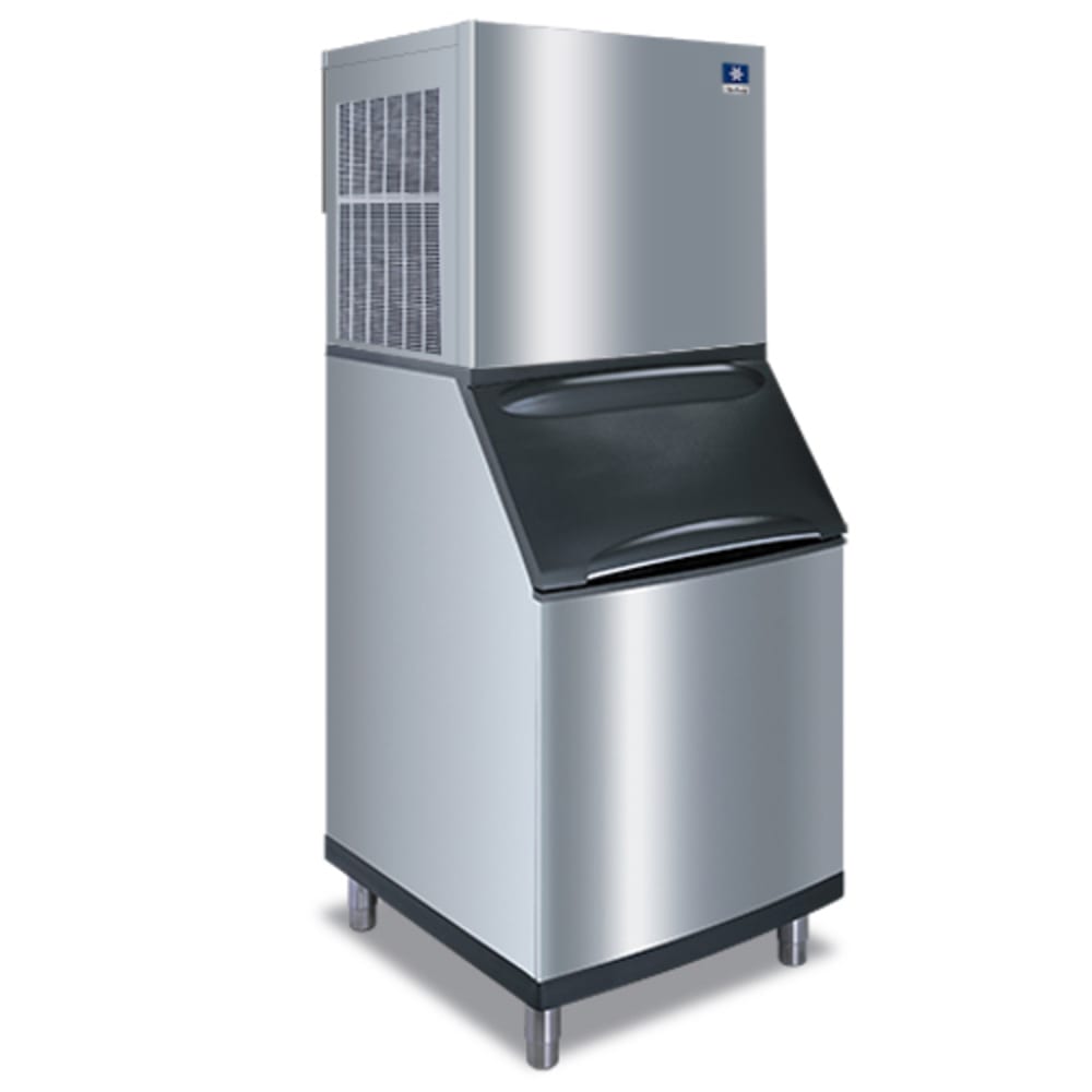 The unit’s D-970 bin connects to the ice machine head with a K-00470 adapter kit. It has a storage capacity of 882 pounds. Cold air is retained since the door is foam insulated, and a polyurethane liner maintains sanitation. A knuckle and thumb guard on the scoop protects against contamination, and the scoop holds 5.3 pounds of ice. Built-in side grips on the door enable employees to easily lift the door open with a single hand, and a latch keeps the door open while they scoop.