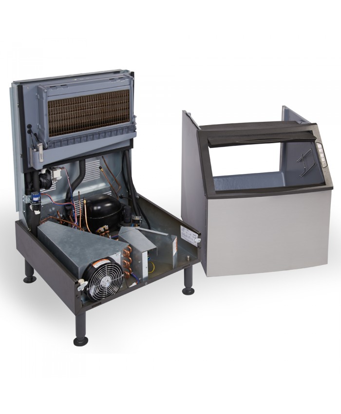 This ice machine features an easy-access door that slides up and out of the way, giving you a clear path to the ice for simple filling of pitchers, glasses, and even transport buckets. It also conveniently includes an ergonomic scoop with a comfort grip handle, along with a holder that can be mounted on either side of the machine for easy storage and access. The machine’s air filter is designed for simple, tool-free removal for quick access during routine cleaning and maintenance, while the bin can be easily removed for full access to the machine’s interior components during more thorough cleaning and maintenance. A 208-230V, 1 phase electrical connection is required for operation.
