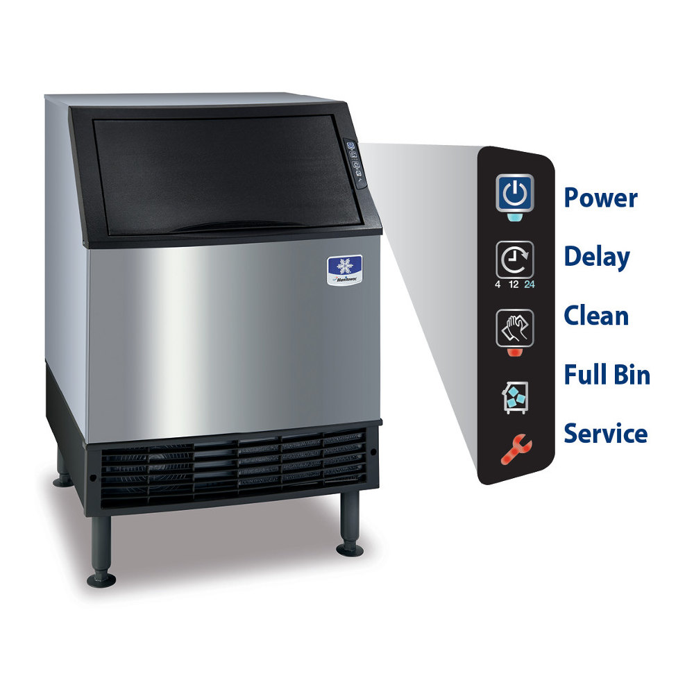 This Manitowoc UYF-0310A-161B NEO air cooled undercounter ice machine combines optimum ice production and user-friendly controls in a space-saving undercounter package! Ideal for making ice in medium volume applications or as a supplement to a larger ice machine, this unit boasts an ample, 119 lb. capacity bin with an angled door that slides up and out of the way for easy access. It can produce up to 295 lb. of full size dice cube ice per day. Intuitive controls and service indicators allow versatile yet hassle-free operation, making it easier to train your staff on the machine. For quick cleaning and maintenance, this unit features several parts that are removable without tools, including its pop-out air filter and ice bin that is attached with hand screws. Plus, its 6″ legs make it easy to clean underneath the machine.