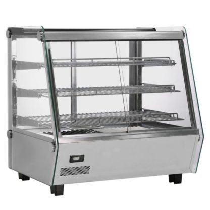 This Marchia heated dual access countertop display case is a heated countertop merchandiser that will keep your food at safe warm temperatures while increasing impulse sales. Features front and rear access for both employees and customers.