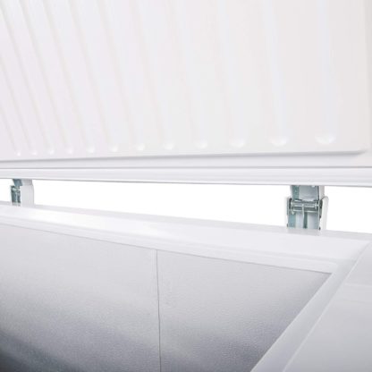 - Sturdy hinged top opening lid that opens up to 90° makes access and servicing the freezer easy