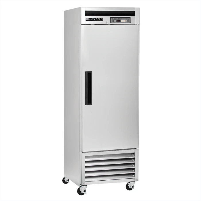 Maxx Cold reach-in refrigerators are constructed from stainless steel, engineered with digital controls and polyurethane insulation for optimal temperature control and easy maintenance. Available in 1, 2 and 3 door configurations, each model features recessed handles, door locks, and PE coated wire shelving with storage space for full size sheet pans.