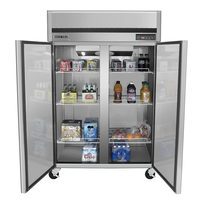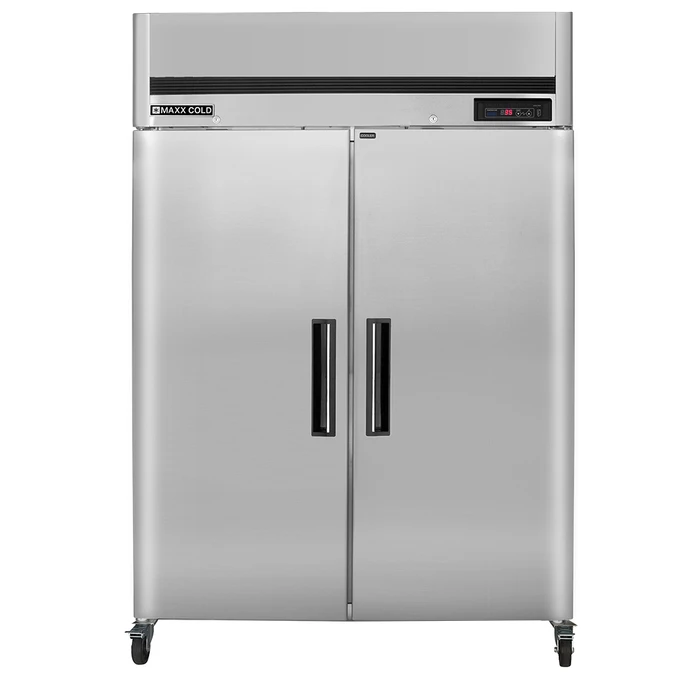 Maxx Cold reach-in refrigerators are constructed from stainless steel, engineered with digital controls and polyurethane insulation for optimal temperature control and easy maintenance. Available in 1, 2 and 3 door configurations, each model features recessed handles, door locks and PE coated wire shelving with storage space for full size sheet pans.