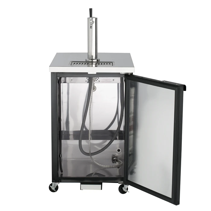 stainless steel draft tower dispenser is mounted to the top center of