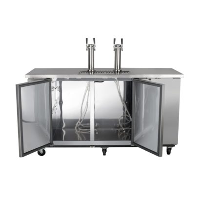 - Two 3″ (77mm) diameter polished stainless steel insulated beer tower dispenses four different liquids