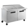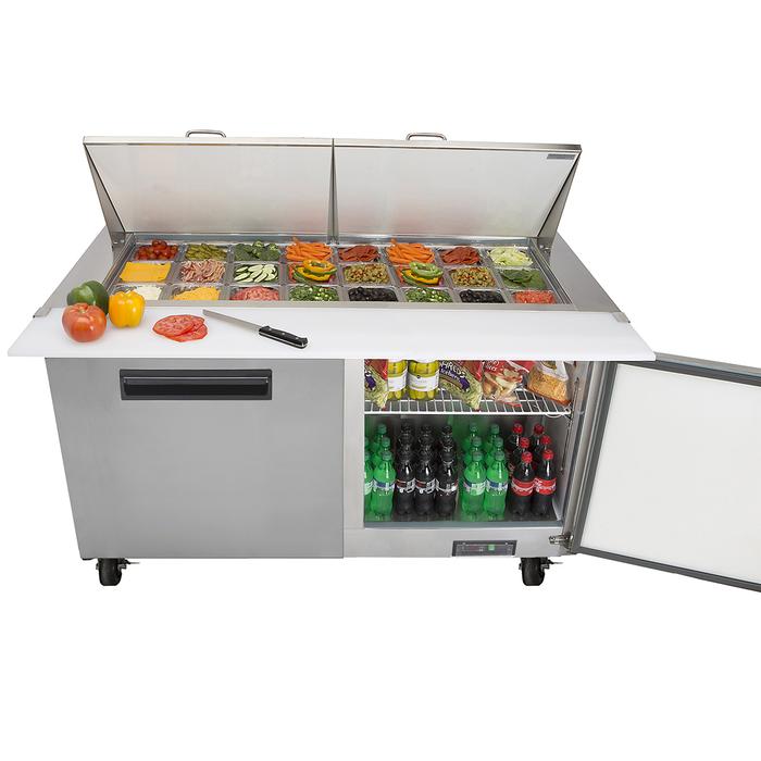 - Equipped with sanitary food grade quality 9″ cutting board, full set of divider bars and twenty-four (24) 4″ deep pans