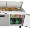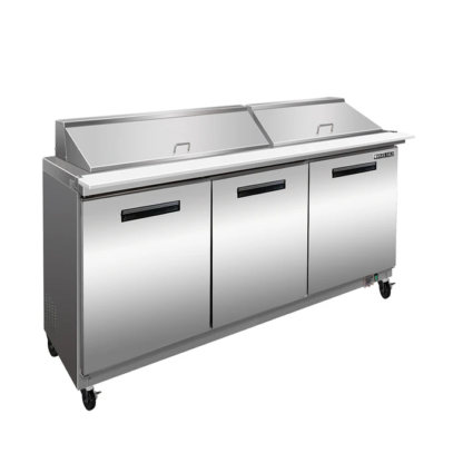 - Equipped with sanitary food grade quality 9″ cutting board, full set of divider bars and twenty-seven (27) 4″ deep pans