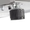 - Exterior is constructed of stainless steel and black trim