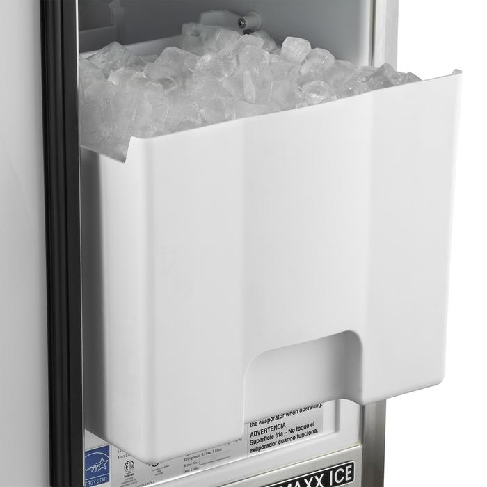 The Maxx Ice MIM50-O outdoor ice machine produces up to 60 pounds of ice per day (under ideal conditions). These stylish, easy to install models are built with durable all-stainless steel construction that makes them perfect for any outdoor freestanding or built-in application.