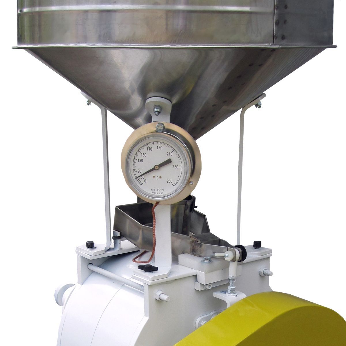 For the 12″ Natural Series II mill; price includes: mill, motor, magnetic starter, adjustable height mount (61.25″ to 67.5″), 1 bushel stainless hopper, pulleys, belts, belt guard, amp meter, product 200 degree F. thermometer, two pivoting 3″ casters, two non-pivoting 3″ casters, 28 gallon size Rubbermaid brute container with lid and dolly, grease gun and 1 tube of food grade grease. Magnetic motor starters are shipped unmounted and require wiring by local qualified electrician. Crating fee for the 12″ mill, less accessory equipment, is $100.