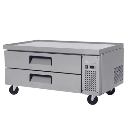 The Migali® C-CB48 refrigerated chef base is designed to enhance your cooking efficiencies. The refrigerated drawer section allows for up to (15) 1/6th size pans of storage space while the top is designed to hold up to 717 lbs of counter top cooking equipment. This series is also engineered with a robust forced air refrigeration system for cold, uniform temperatures throughout the chef base’s interior. The C-CB48 incorporates a digital controller and temperature read-out for improved temperature consistency, increased energy efficiencies and top-of-the-line performance. Lastly, this unit is equally eye catching and ergonomic, boasting a high polished stainless steel exterior and interior and recessed drawer handles to maximum work space.