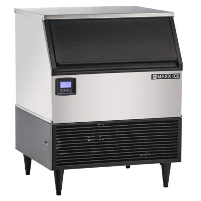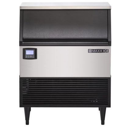 Intelligent Series Ice Machines are designed to consume up to 40% less water than similar competitor units and produce ice up to 20% faster. Maxx Ice Intelligent Series self-contained, air-cooled ice machines are perfect for any free-standing or built-in applications for foodservice, hospitality and entertainment industries. The durable stainless steel and black trim exterior is easy to clean and service. and produce either full or half dice ice cubes. The polyethylene storage bin liner includes an antimicrobial agent for improved sanitation as well as an interior LED light to illuminate ice when bin door is open. The digital controls and front-breathing design with vertical evaporator will deliver years of reliable ice production. Supplied with four 6″ black leveling legs and 5-15P NEMA plug allow for easy installation. Ice makers meet Energy Star, UL and NSF guidelines and available in 115V and upon request 230V.