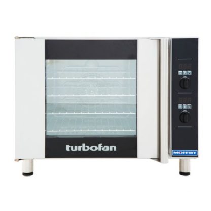 The E31D4 stainless steel oven is electrically heated with a one piece porcelain enameled chamber. Having a side-hinged door, to make for easy cleaning and versatility there’s the option for field reversible hinging. Equipped with a top broiling element and broil operating mode, the oven has separate digital displays and mechanisms to set time and temperature, as well as both manual and programmed operating modes. In fact, you could choose from up to 20 different programming choices to meet your cooking, roasting, or baking needs. Designed with a single direction, low-velocity fan, it also has a halogen lamp so you can check the progress of dishes or items without opening up the oven door, which keeps heat in with its plug-in door seal. With room for four half-size sheet or hotel pans, the anti-skid feet makes sure the oven won’t move unless you move it.