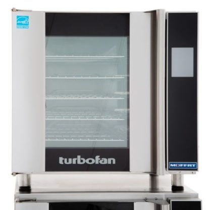 The Moffat E32T5 28-7/8″ Turbofan Electric Convection Oven is constructed with a variety of technological advancements that allow it to provide unique options for users. This unit comes in a stainless steel exterior and has a porcelain enameled chamber. A touch screen display lets you manually control time and temperature, while recipe operating modes are offered via an icon-driven program. If you want to upload or download recipes from the oven’s memory, a USB port avails itself for service.