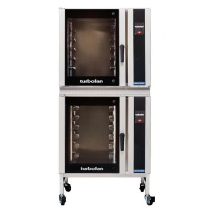 The double stacked full-size stainless steel Turbofan touch screen/electric programmable convection oven is NSF listed, and ETL listed for the United States and Canada.