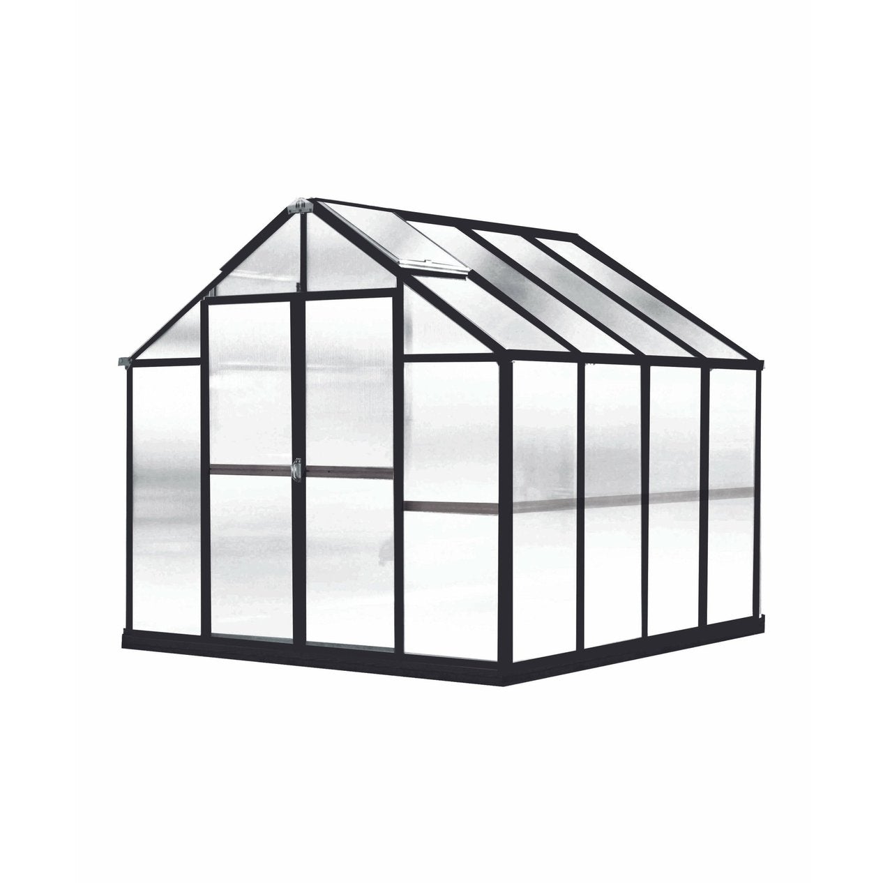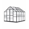 Riverstone Monticello Growers Edition 8 ft x 8 ft Greenhouse Black MONT-8-BK-GROWERS | The Monticello – Growers Edition is the ideal greenhouse designed for crops that require a lot of light in a private and secure setting. The Monticello is constructed from the highest quality extruded aluminum (US grade – not the thinner & more brittle foreign aluminum) and electrostatically painted Black (guaranteed to contain 0.0% lead). Proudly made in the USA.
